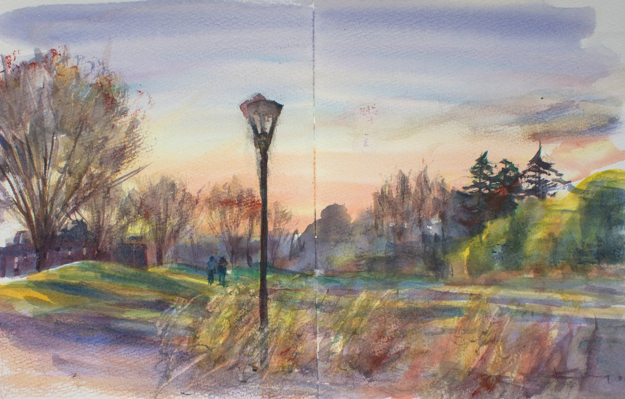 2024年 水彩、紙 作品サイズ27×15cm 八切り額およそ31㎝×25㎝ 額装代・送料込み