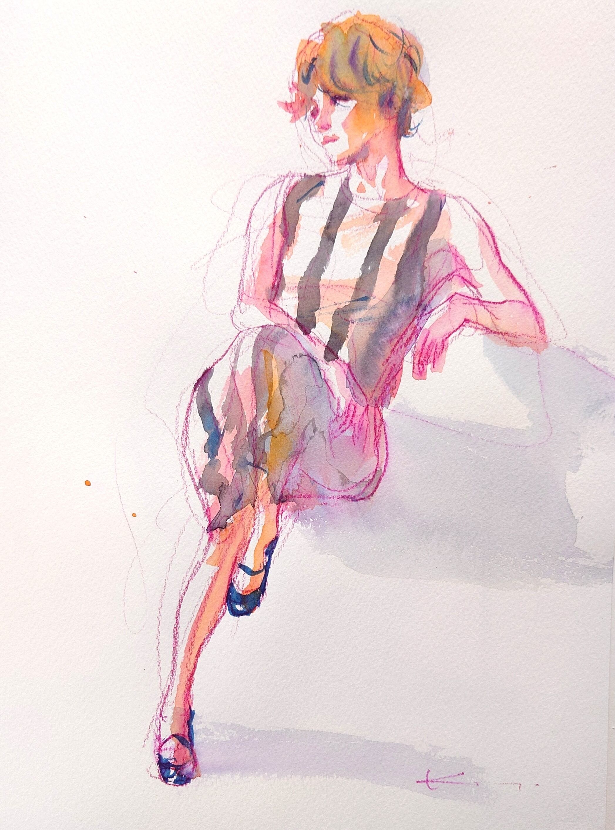 透明水彩、紙(作品およそ30×23cm、額縁およそ40×30cm)