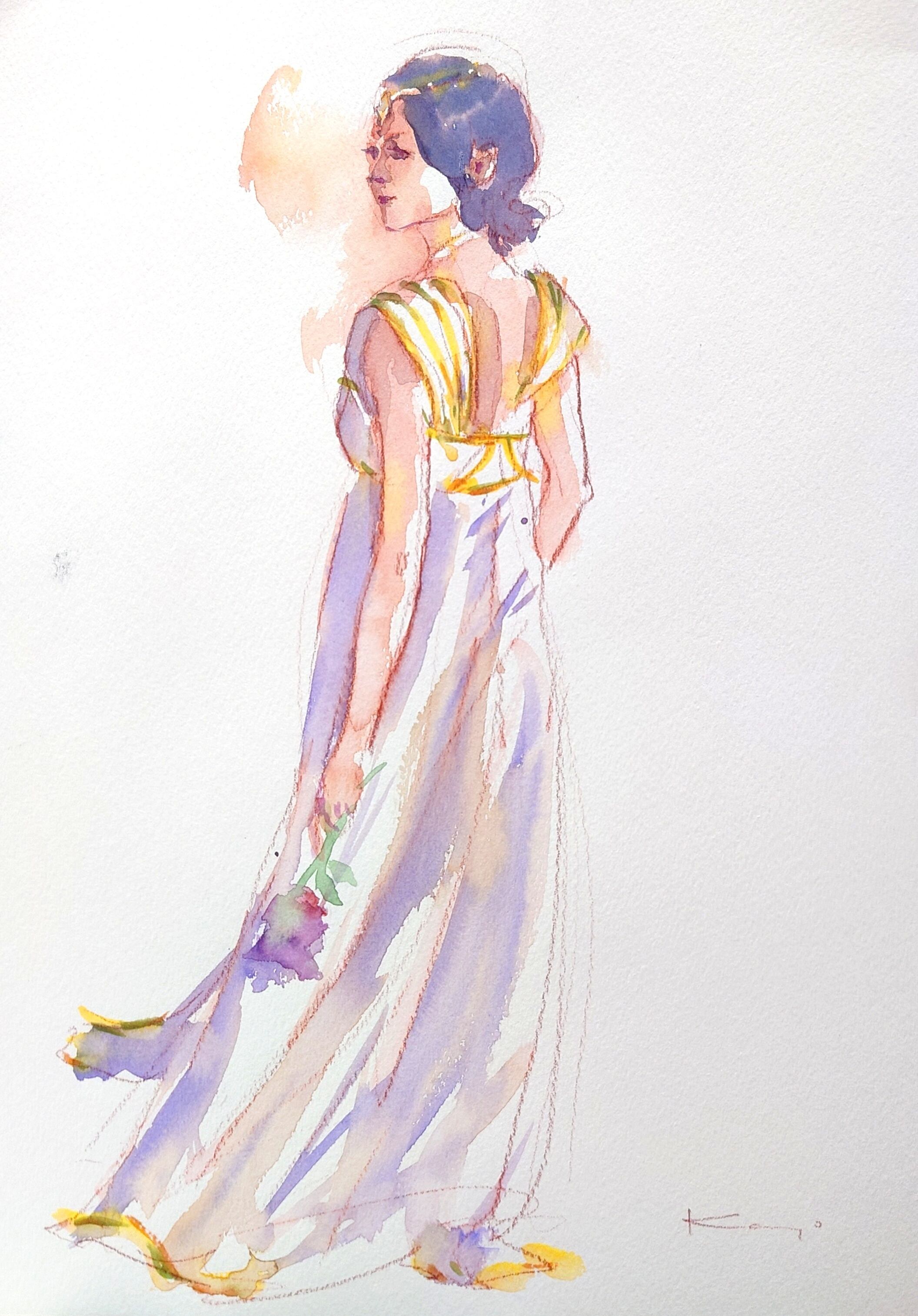 透明水彩、紙(作品およそ30×23cm、額縁およそ40×30cm)
